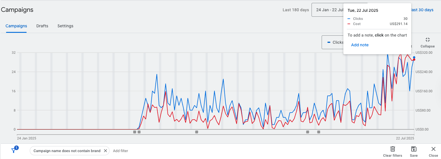 We were spending roughly $50 a day on non-branded terms, but our ambition was to spend almost all the budget on non-brand terms, which we’ve now been able to achieve by conducting the strategy below.
